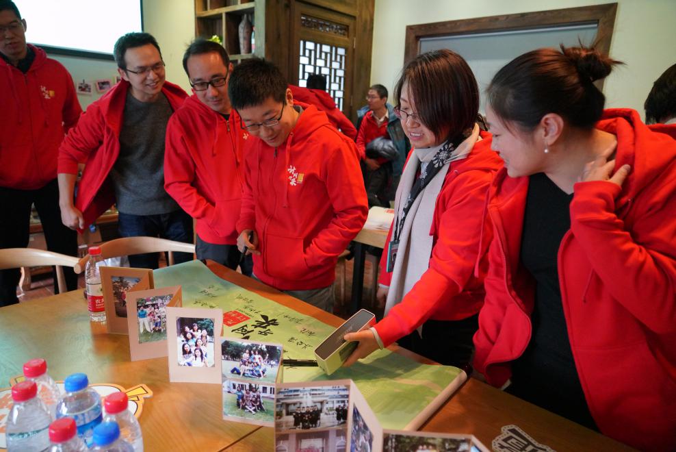 下午两时三十分,大家共聚当年上课时的教室,进行猜猜他/她是谁的游戏。以接龙的形式,第一个人拿到别人的画像后,给大家描述当年他给大家留下的印象,由大家来猜猜他/她是谁。二十年前的情景尤历历在目,这个小游戏让各位员工似乎又回到了当年同窗读书的欢乐时光。