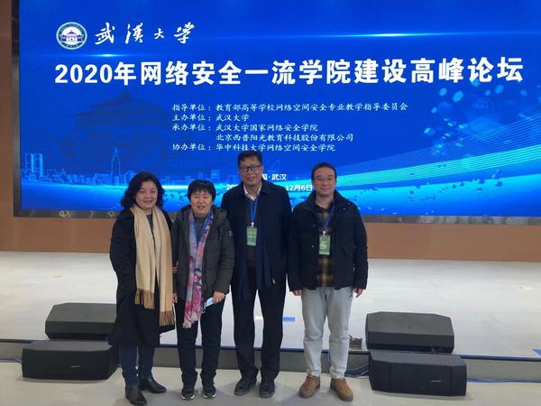 2020年12月5日-6日,由教育部高等学校网络空间安全专业教学指导委员会指导,武汉大学主办的“2020年网络安全一流学院建设高峰论坛”在湖北武汉举行。公司经理林卫国教授、副经理尚文倩教授等一行四人赴武汉参加会议。