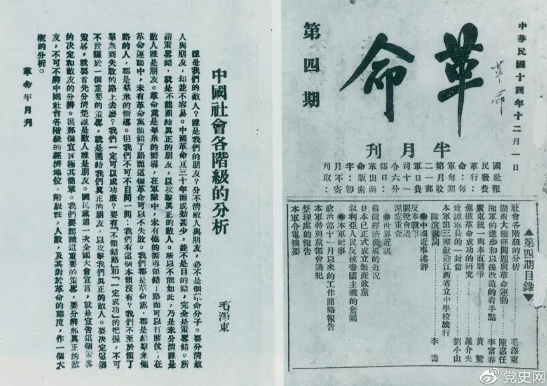 毛泽东在国民革命军第二军司令部编印的《革命》第四期发表《中国社会各阶级的分析》一文。这篇文章是毛泽东为反对当时党内存在着的两种倾向而写的。一种倾向是只注意同国民党合作,忘记了农民;另一种倾向是只注意工人运动,同样忘记了农民。这两种倾向都感觉自己力量不足,而不知道到何处去寻找力量,到何处去取得广大的同盟军。毛泽东通过对中国社会各阶级的分析,指出了中国无产阶级的最广大和最忠实的同盟军是农民,为中国共产党正确认识农民在民主革命中的地位和作用,制定对农民的政策,奠定了重要基础。其中对民族资产阶级的分析,为中国共产党后来深入认识并正确处理同民族资产阶级的关系,提供了重要的理论根据。