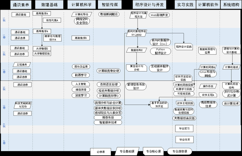 历史沿革:计算机科学与技术专业创建于1999年,经过20余年的努力,已发展成传媒行业内计算机教学、科研综合实力强的专业,在传统媒体到智能媒体的演进过程中发挥重要作用。
