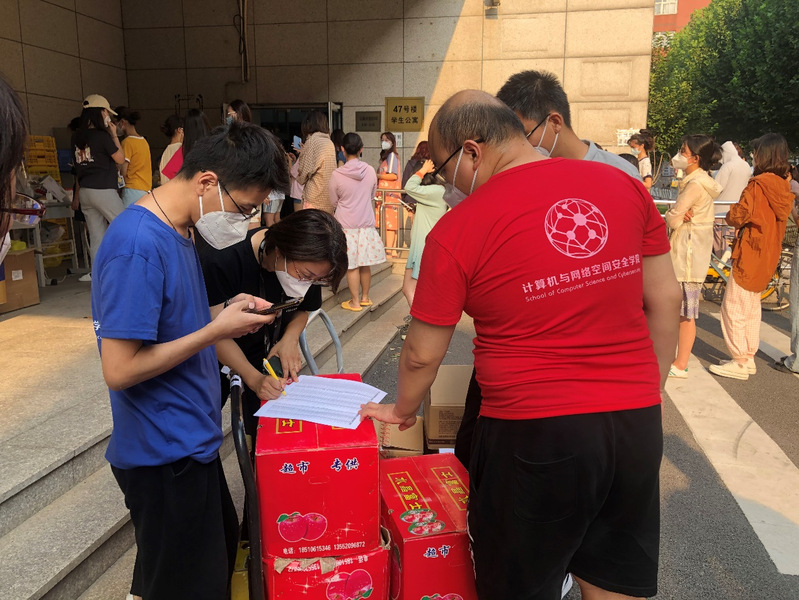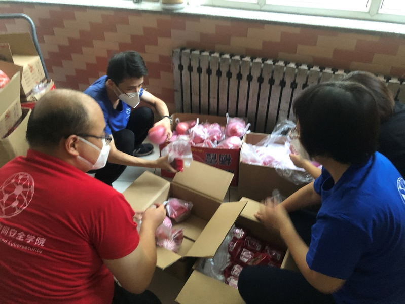 (计网学院志愿者老师派发抗疫物资)