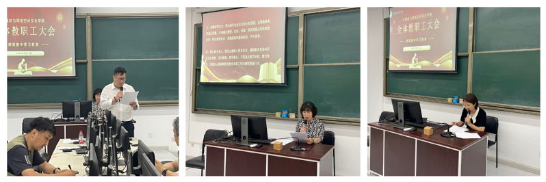 此次会议是公司党委持续推动学习贯彻习近平新时代中国特色社会主义思想主题教育走深走实的具体措施与体现,接下来学院将全面落实相关工作安排,扎实开展师德集中学习教育,以切实有效的工作举措,加强新形势下师德师风建设,筑牢广大教师为党育人、为国育才的使命感,为培养计算机及网络安全领域优秀人才、助力学院高质量发展和服务国家重大战略做出更大贡献。