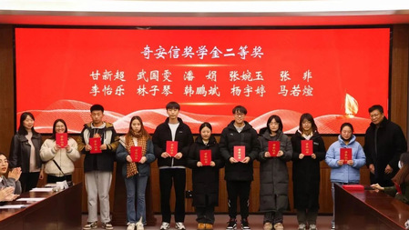 2021级本科生邓何奇、2022级硕士研究生李梦洁作为获奖员工代表发言。他们表示,非常感谢学院及老师们的培养,感谢奇安信集团的支持和帮助,自己会以这份资助为动力,争取今后在专业学习中取得更好成绩。