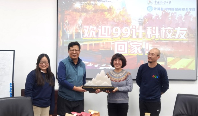 99级员工们向学院赠送了纪念品“靠山”,寓意着学校和学院永远是毕业生们最温暖的港湾、最坚实的靠山。员工们由衷感激在校学习期间受到老师们的谆谆教诲和关爱帮助,不仅收获了知识也收获了成长,同时为学校近些年高质量跨越式发展深感震撼、倍感自豪!