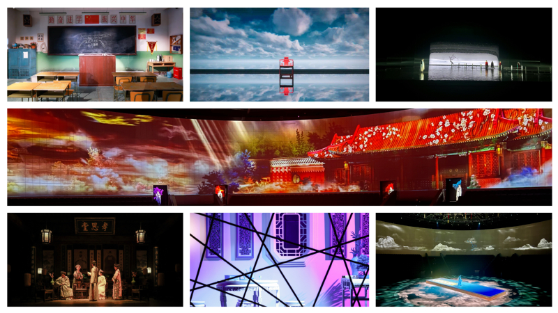 戏剧幻城还将“亦真亦假、榫卯拼接、虚实留白”等中国式哲思与美学理念运用到景观设计中。从幻城入口处16扇风格迥异的“中国门”开始,到幻城中随处可见的“留白”、“古建”与“方块字”,一个个空间如迷宫般错落有致,彼此间既独立又互为映衬,使得整个幻城在保持古典美学韵味的同时,又充满现代科技感与探索乐趣。