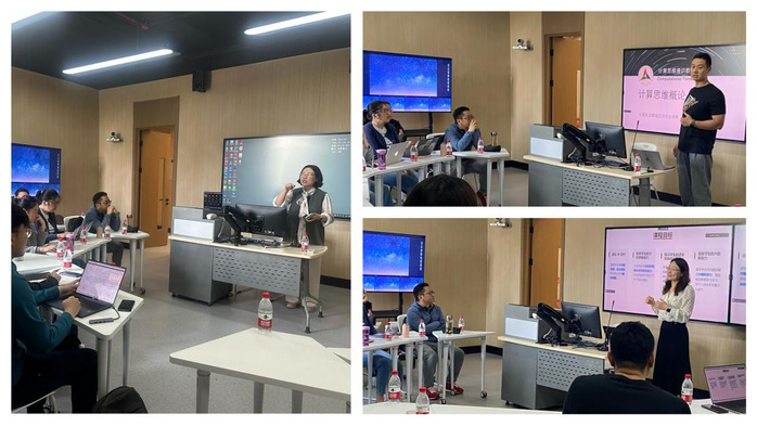 随后,中国科学院计算技术研究所专家分享了他们在AI思维教学领域的思考和教学资源,阿里云、华为云等企业代表分别介绍了各自企业云实验环境和大模型工具等教育资源,为深化校企合作、实现课程内容与产业需求对接提供了有力支持。在深入交流环节,与会教师围绕分享内容展开了热烈讨论,为计算思维课程的持续优化与创新提供了多元视角与建设性建议。