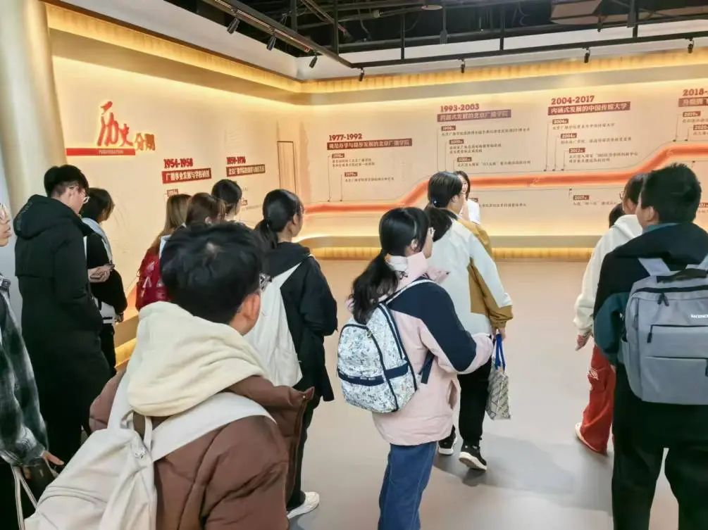 同学们认真聆听校史馆解说,感受传媒魅力,对学校的历史演变与现状有了更加深刻的理解。