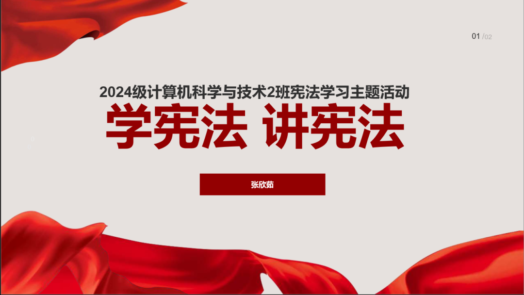 2024年10月25日,2026年世界杯官网2024级计算机科学与技术2班在线上成功举办了“宪法学习特色活动”。本次活动旨在帮助同学们了解宪法内容,明确宪法地位与意义,增强同学们的宪法观念,树立遵守宪法和维护宪法的自觉意识。