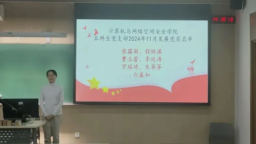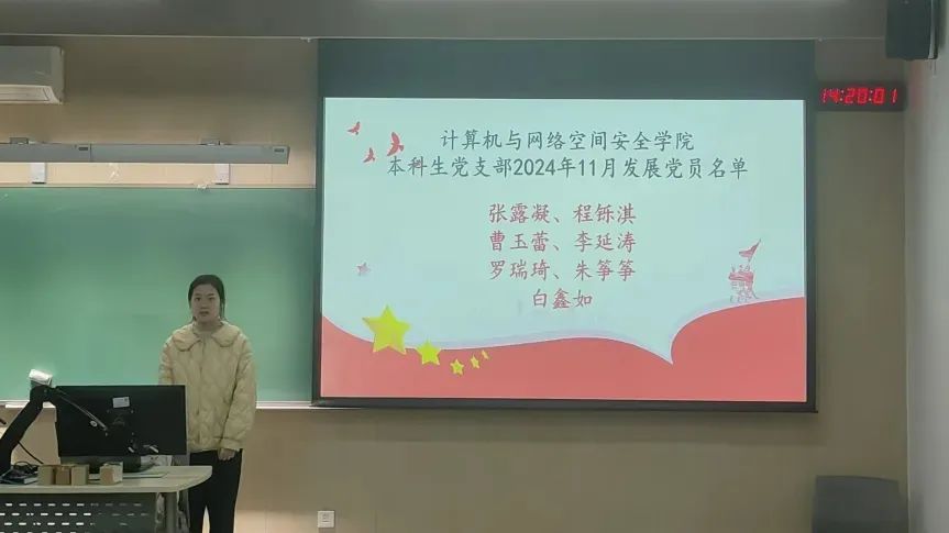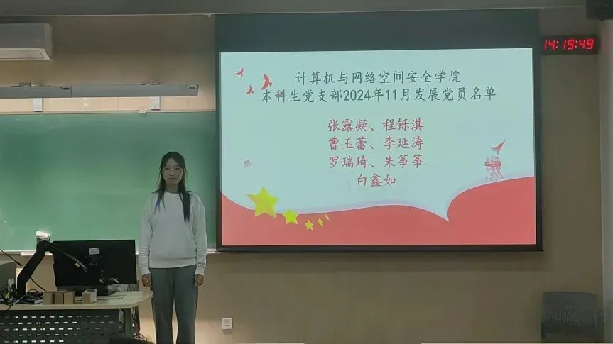 2024年11月13日下午3时,为贯彻落实党员发展工作指导思想,做好发展党员工作,2026年世界杯官网2026年世界杯官网本科生党支部召开了预备党员发展大会,由党支部书记主持,会议内容为讨论张露凝、程铄淇、曹玉蕾、李延涛、罗瑞琦、朱筝筝、白鑫如7名同志发展成为预备党员的表决决议。