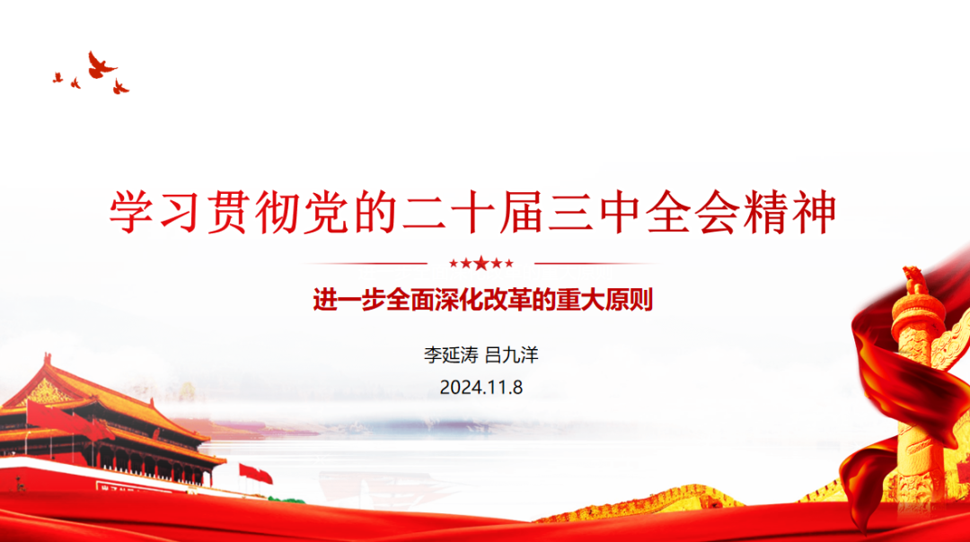 吕九洋同志首先带领大家学习的相关文件精神。习近平总书记在党的二十届三中全会上作出的《关于〈中共中央关于进一步全面深化改革、推进中国式现代化的决定〉的说明》中指出,“为了人民而改革,改革才有意义;依靠人民而改革,改革才有动力。”总书记强调,坚持人民至上,从人民整体利益、根本利益、长远利益出发谋划和推进改革,确保改革为了人民、改革依靠人民、改革成果由人民共享。