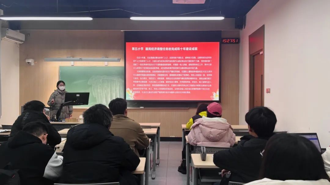 在党员魏晓宇的带领下,同学们学习了中国共产党探索建设中国特色社会主义道路的历程。新中国成立后,党不断总结经验,逐步找到符合国情的社会主义建设道路,为后来发展奠定了坚实基础。