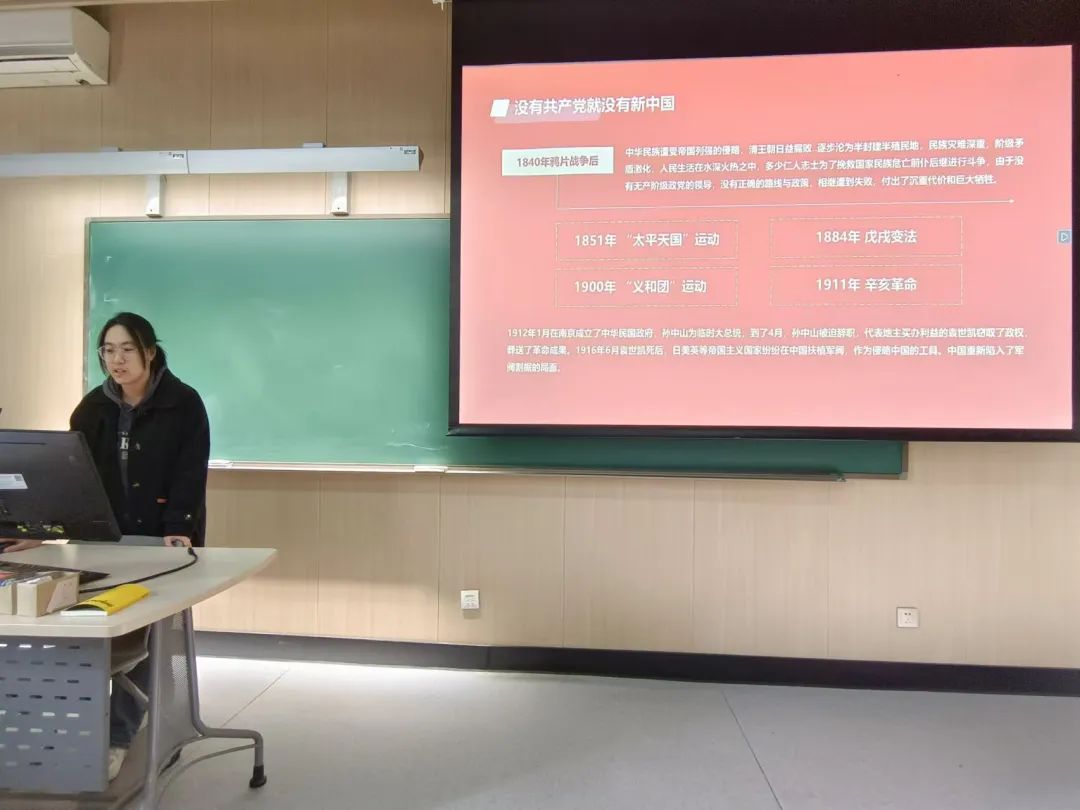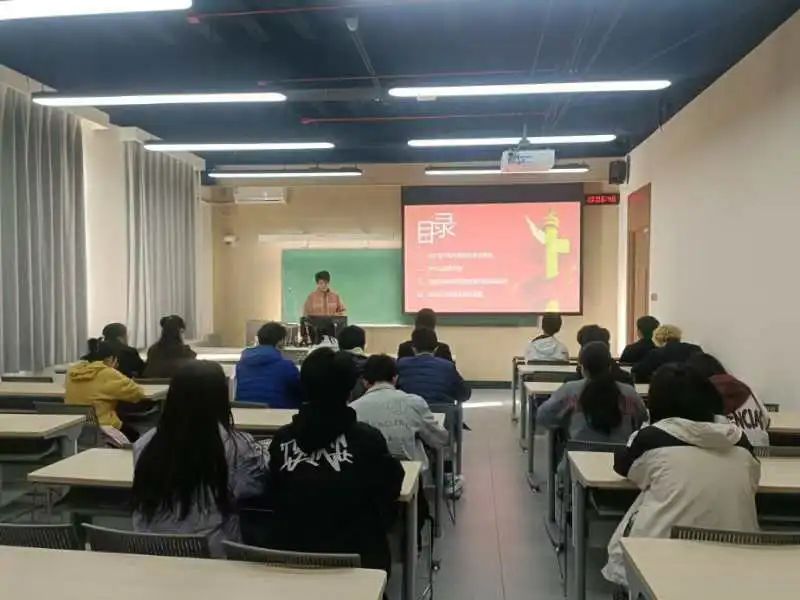 在团日活动开始时,党员白建发和党员李青琪简短地为同学们介绍了本次团日活动学习的目的和意义,强调了学习党史的重要性,从而激发了同学们的爱国热情,让同学们更好地从先辈们的事迹中汲取力量,传承红色基因。