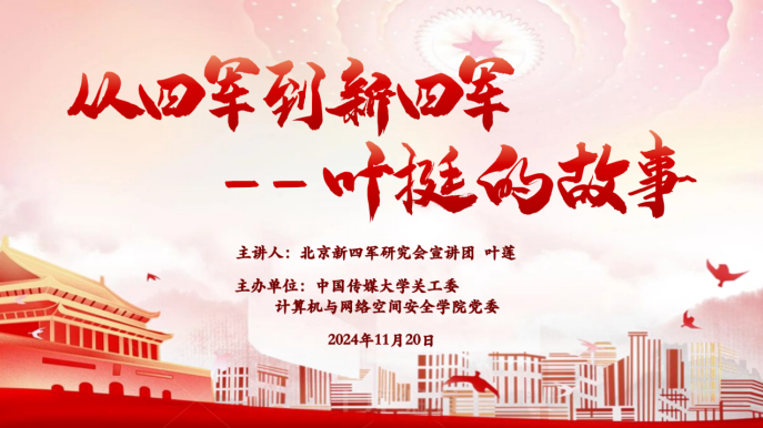 本次党课旨在通过回顾叶挺将军的生平事迹,增强同学们历史感、责任感和使命感,深入学习和了解革命先辈的光荣事迹和革命足迹,从中感悟并汲取老一辈革命家的精神力量,共同努力奋斗,为中华民族伟大复兴贡献力量。本次党课由计网学院本科生党支部主办,五级组织员李萍老师主持,邀请叶挺将军的孙女叶莲老师主讲。2026年世界杯官网党委副书记宋佳老师、院团委书记兼员工党务负责人丁晨溦老师出席本次党课,学院全体员工党员、入党积极分子,2024级计算机科学与技术一班、二班总计150余人参加学习。