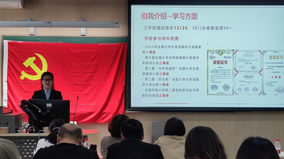 再次祝贺通过答辩会的候选者,恭喜你们成为一名光荣的发展党员。没有通过答辩会的同学们也不要灰心,相信在和老师、党支部书记及同学的交流后,一定对自己的工作生活有新的思考和方向,期待你们在下次答辩会更加精彩的表现。