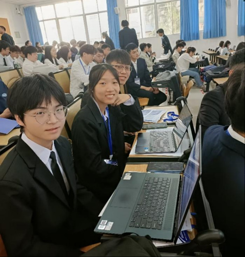 三位参赛队员在决赛的候场地做赛前准备