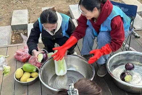 与此同时,另一部分同学们走进厨房秒变“大厨”。洗菜的同学细心地搓洗每片菜叶,切菜的同学利落将食材切成各种形状。掌勺的同学点火倒油,食材下锅后“滋滋”作响,翻炒调味一气呵成。很快,一道道佳肴出锅飘香。大家围坐共享美食,在大饱口福中感受劳动的快乐。