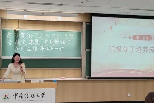 院团委青年发展部易诗语同学对入党积极分子培养流程以及培养教育细则进行了详细介绍,旨在规范入党积极分子培养工作、明确教育要求,进一步引导入党积极分子明确培养目标,为后续的思想提升和组织考察奠定基础。