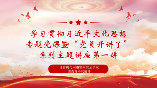 参加计网学院举办的学习贯彻习近平文化思想专题党课暨“党员开讲了”系列主题讲座第一讲,让我收获颇丰。党课中提到“让互联网从‘最大变量’变成事业发展‘最大增量’”,这句话印象最为深刻。身处网络空间安全专业,我深知互联网的迅猛发展给社会带来诸多变革,也充满不确定性。习近平文化思想为我们指明方向,激励我们以积极姿态拥抱互联网,用专业知识助力其成为推动事业发展的强大动力,为实现中华民族伟大复兴贡献力量。