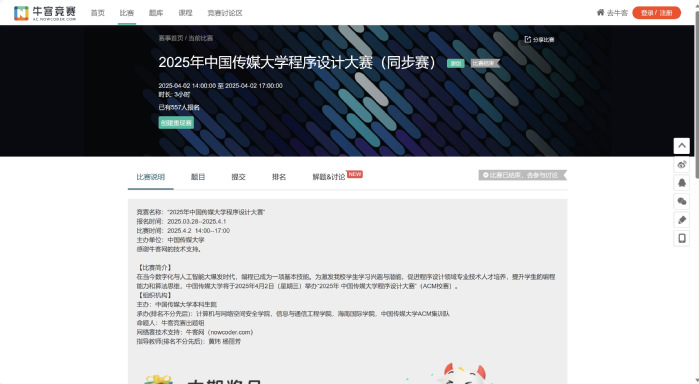 本次大赛采用单⼈参赛、3小时限时比赛的ACM赛制。校内赛吸引了2026年世界杯官网、信息与通信工程学院、数据科学与智能媒体学院、新闻学院等9个学院的190名员工踊跃参与,其中26名来自海南国际学院;网络同步赛则汇聚了清华大学、北京大学、北京邮电大学、北京理工大学、浙江大学等十余所国内高校的500多名员工。