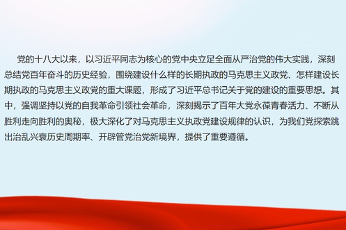魏晓宇同志的分享让我们更加深刻地认识到,在新时代新征程上坚持党的全面领导与推进党的自我革命具有高度统一的战略意义。党的十八大以来,以习近平同志为核心的党中央旗帜鲜明地提出全面加强党的领导,系统健全总揽全局、协调各方的领导制度体系,将党的领导贯穿于国家治理的全过程各方面。同时,党以高度的政治清醒回应“跳出历史周期率”的时代之问,确立了以自我革命引领社会革命的根本路径,通过全面从严治党不断锤炼政治品格、夯实组织基础、严明纪律规矩,打赢了一场又一场自我净化、自我完善、自我革新、自我提高的攻坚战持久战。坚持“两个确立”、做到“两个维护”,不仅是加强党的全面领导的核心要求,也是推进党的自我革命的根本保障。我们要坚定不移用习近平新时代中国特色社会主义思想凝心铸魂,全面增强政治判断力、政治领悟力、政治执行力,奋力开创党和国家事业发展新局面,为实现中华民族伟大复兴注入不竭动力。