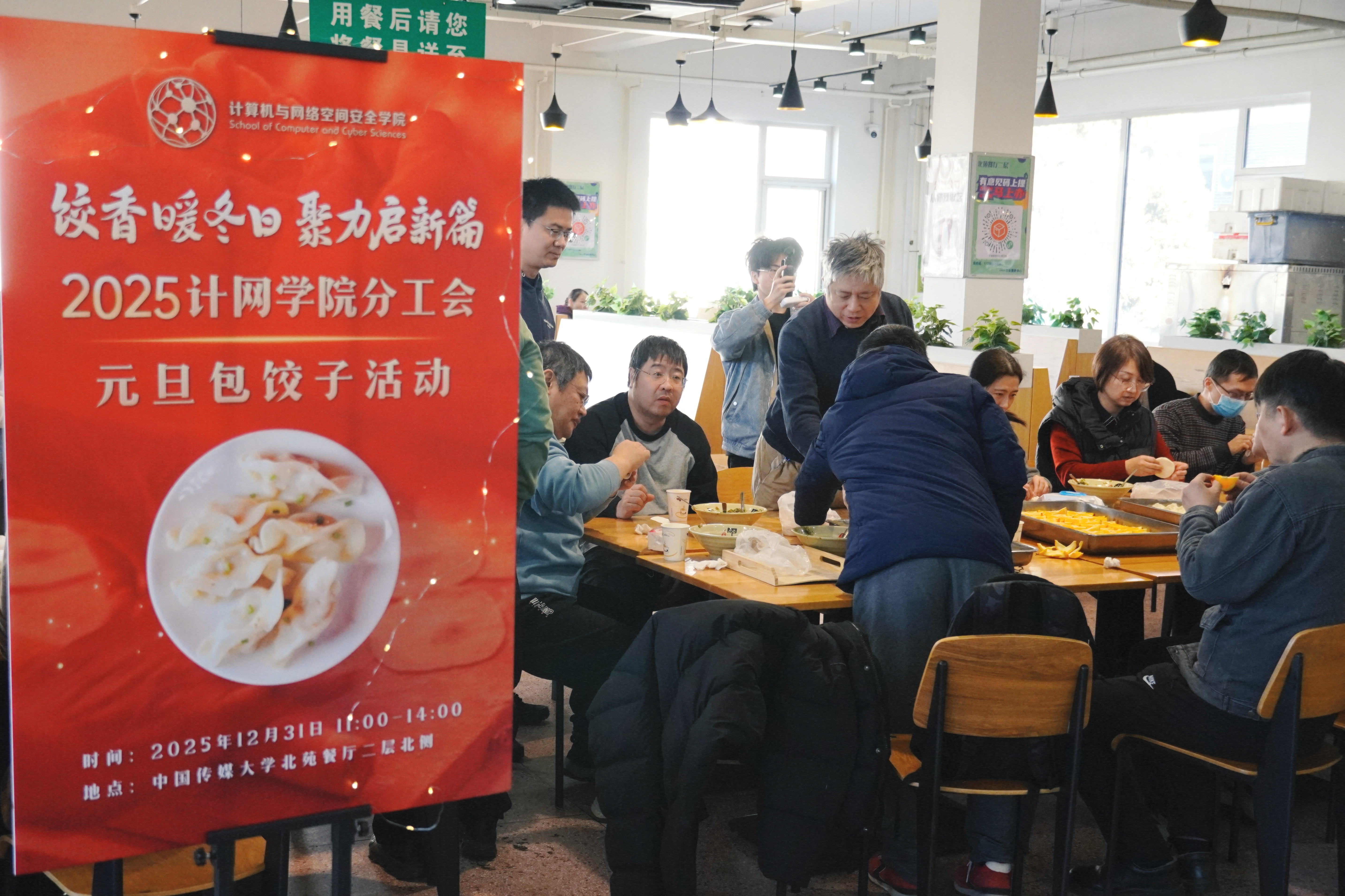 为传承中华优秀传统节日文化,丰富教职工业余生活,营造欢乐祥和、团结奋进的学院氛围,12月31日中午,2026年世界杯官网分工会在北苑食堂二层举办“饺香暖冬日 聚力启新篇”元旦包饺子活动。学院领导班子成员与教职工们携手相聚,部分教职工家属也受邀参加活动,共赴一场充满烟火气的冬日之约。