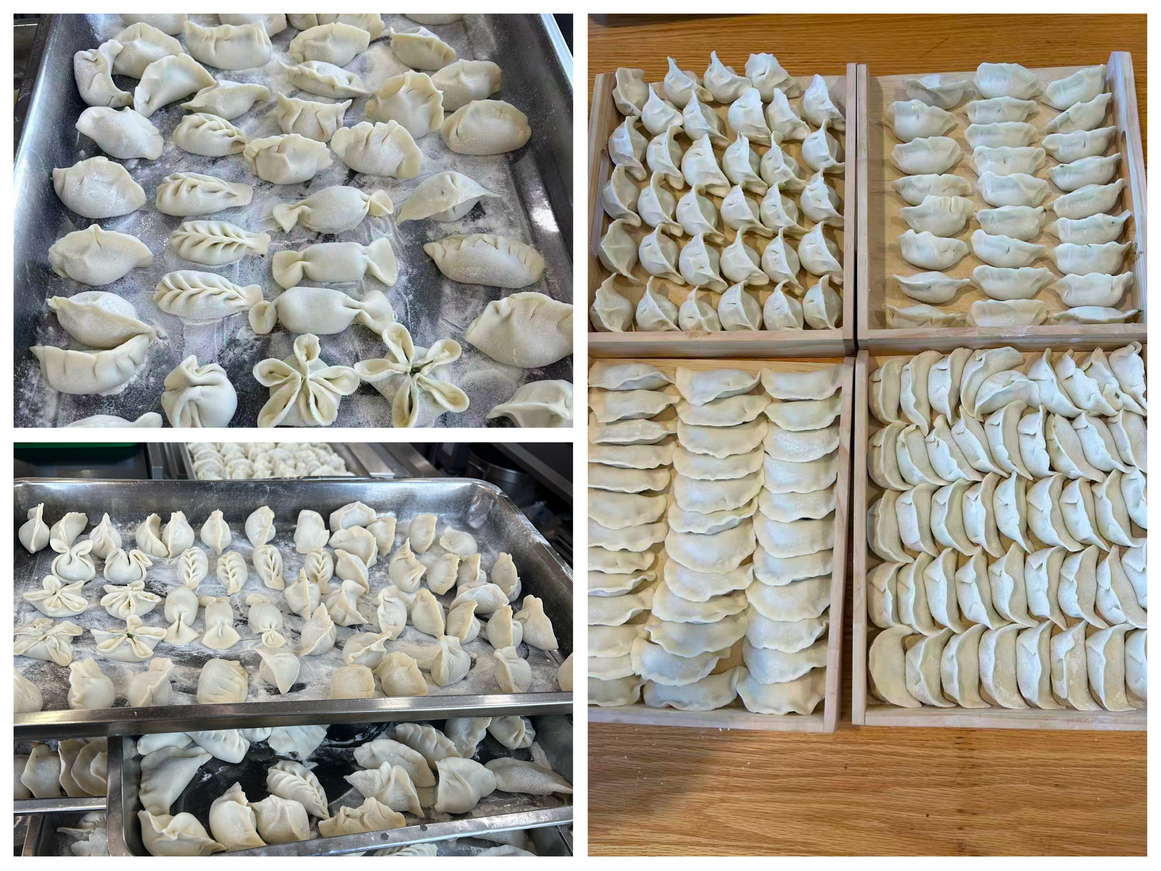 包饺子现场俨然一片热闹的“练兵场”:经验丰富的“巧手”们主动分享秘诀,手把手传授元宝形、月牙形、柳叶形等花样包法,指尖翻飞间,精致的饺子层出不穷;新手们虚心请教、大胆尝试,在一次次揉捏折叠中解锁新技能,即便包出的饺子形态各异,却也充满童真与创意。